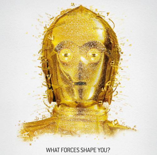 系列稿文案「What forces shape you?」不僅貫穿展覽意義,且巧妙運用了電影的能量概念-原力(Force);更精采的是每張稿子的視覺構圖,細膩使用與角色相關的元素而成,呼應「What forces shape you」。系列稿兼具創意、美感,甚至心理學和哲思。的確,一個人的性格,是與時間、空間、其他元素交相影響而成!