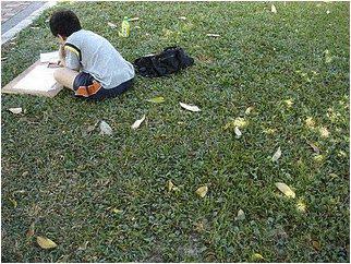 跟他上課,我只要想很多很多好玩的東西,水墨黏土色鉛筆聽音樂去公園晒太陽寫生。