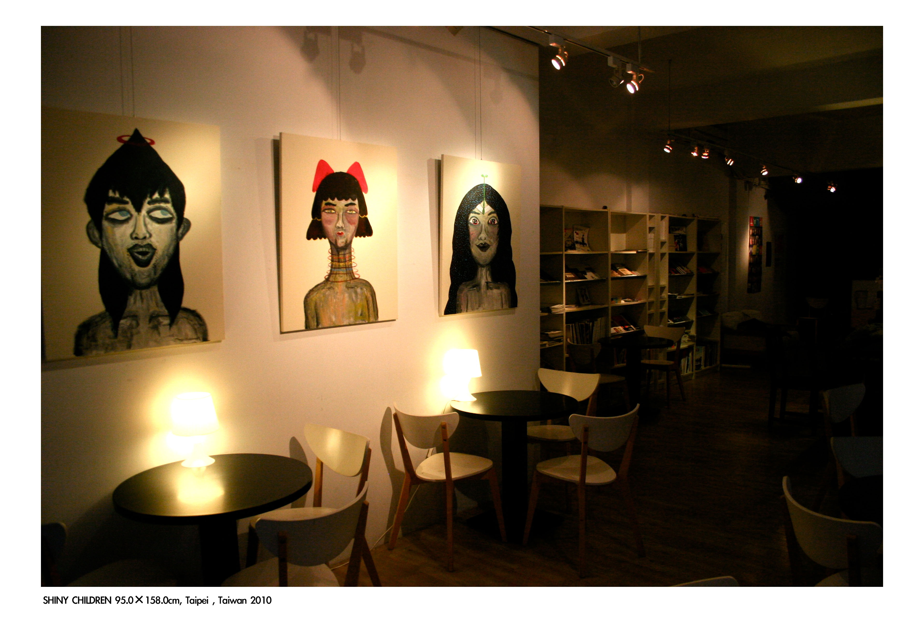 而我認真生活,認為生活即是創作,相信畫畫原是人類本能,畫畫是隨時隨地的,隨手可得的鉛筆、原子筆、彩色筆、色鉛筆、壓克力顏料都是我的繪畫材料。題材大多是生活中遇見的人、事、物,只要是有趣的事我都想要用樂觀幽默的方式,藉由對生活的體悟,深入淺出地讓他們存在在我的插畫世界中。其中「閃亮孩子系列」是我一輩子都會繼續不斷的主題,這個系列畫的是我的朋友,想要藉此詮釋友情。為什麼取名閃亮孩子?是因為這系列的人物都有一雙漫畫式水汪汪的閃亮亮大眼,用這雙眼睛來悼念每個人的夢想,也強調夢想永遠都在,只要我們堅持。
