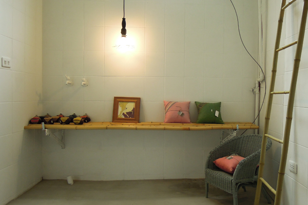 由老公寓改建而成的「邊邊」,位於臨沂街,充滿了老闆對於舊時公寓的記憶。「邊邊」的二樓有片榻榻米,讓人一眼看到,就想拖鞋爬上去,伸長腿、躺下來休息打滾。關於榻榻米的設計構想,則來自老闆在花蓮外公家的記憶,常讓老闆小時候打滾度辜的榻榻米,就此化作老闆最推薦的角落。在榻榻米上躺下來,眼睛一睜開,就看到幾盞老式的日光燈,鐵製燈架的角落還微微地生鏽,古樸的模樣,不經意地召喚起遙遠又甜蜜的兒時記憶。榻榻米的外面是個可愛的陽台,台灣特有的鐵窗上,爬滿了各式植物,一如我們漫步小巷弄時,抬頭望見的陽台風景,「當初蓋設陽台的時候,就希望可以打造一座出現在許多公寓裡的陽台,上頭總是掛滿各種植物,尤其是蘭花的那種。」