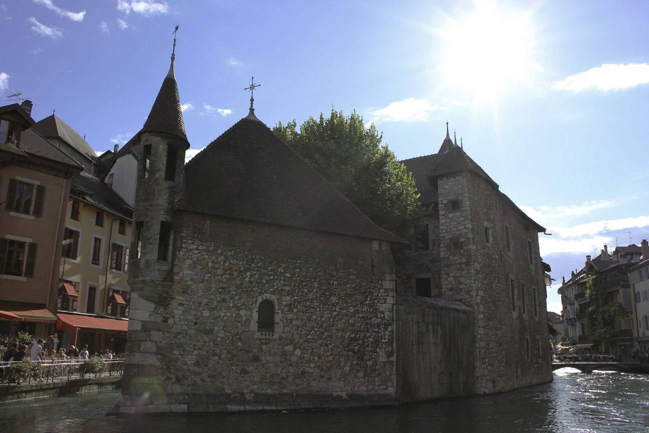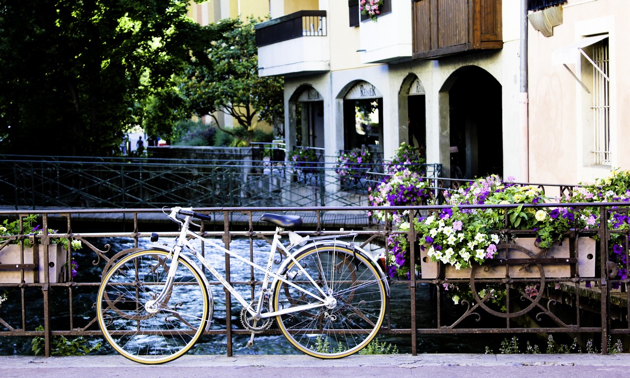 在教堂側便是安錫最動人的水路,一直以來我對於帶有水流的城市往往是無法抗拒,而在安錫流水是急促地穿過市區,四處可見的小橋與花卉搭映著腳踏車,儼然暗示了某一種生活的趣味——壯闊的山勢搭配著全歐洲最清澈的湖泊,隨處可見的公園搭配著小孩子們的笑語,饒富趣味的窗台搭配著藍天,街角恣放的花朵錦簇著這個湖邊小鎮的名聲,L 和我在大街小巷中隨意地逡巡著,在這頭遇見了格格笑個不停的小孩兒,又在那頭看到讓人驚豔的招牌彩繪——各式的小招牌都是別具用心的風景,比起城市中霓虹燈管映照的來的更有味道的多,這讓人不禁想起台中中港路上沿途的「太陽餅總店」、「太陽餅老店」、「第一間太陽餅」,這兒的一切顯得樸實而可愛的多,即使掉了漆,即使鏽面橫生,卻在龜裂的斑駁中保有某種不被截斷的事物——大抵而言,這座小城之中不會太過現代的城區有著石牆堆砌,行走之間可以讓人專注在讚嘆她的美感,信步拈來都是由內而外體現出的美感,一種居民在地的生活美感,一幅在文字之外的風情。