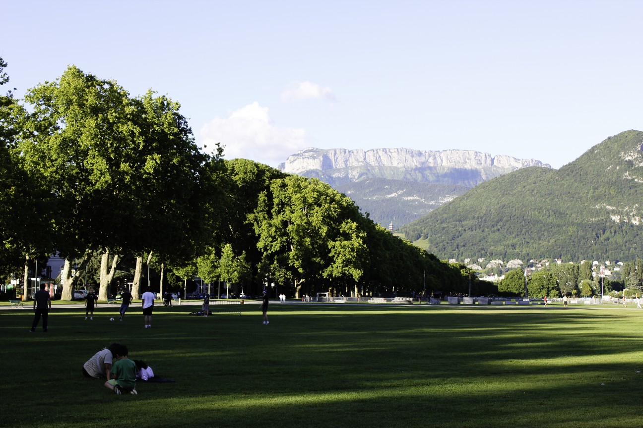 眼下這一片小巧地不可置信的草皮上頭,有無盡地想像空間可以著墨,從路人恣意的身影中彷彿可以窺見藍天入夜後的一片斑斕——會不會在某個時空裡頭,安錫湖上的一片燦爛也成為明信片上頭逐漸斑駁的黑白畫映呢?結局無所謂是否,這再新鮮不過的瞬間已然言明了。