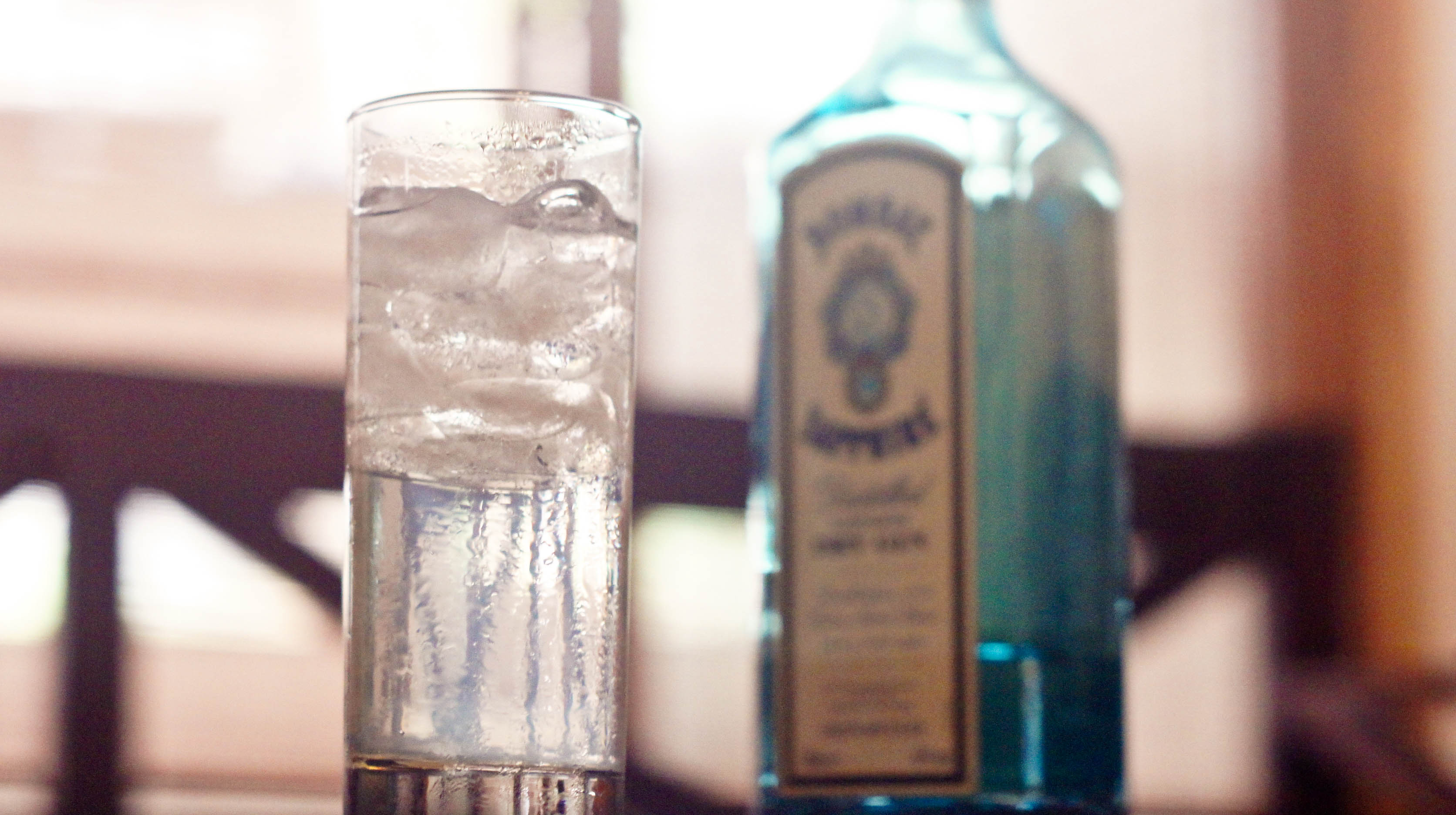 黃色瓶身的奎寧水有著強烈的刺鼻與苦澀,雖然我們不再需要它殺蟲治瘧疾的療效,那特有的消毒藥水味還是被刻意地保留下來,好提醒你皺起眉頭喝飲料是什麼蠢樣。就算冰了它也無濟於壓抑口感。