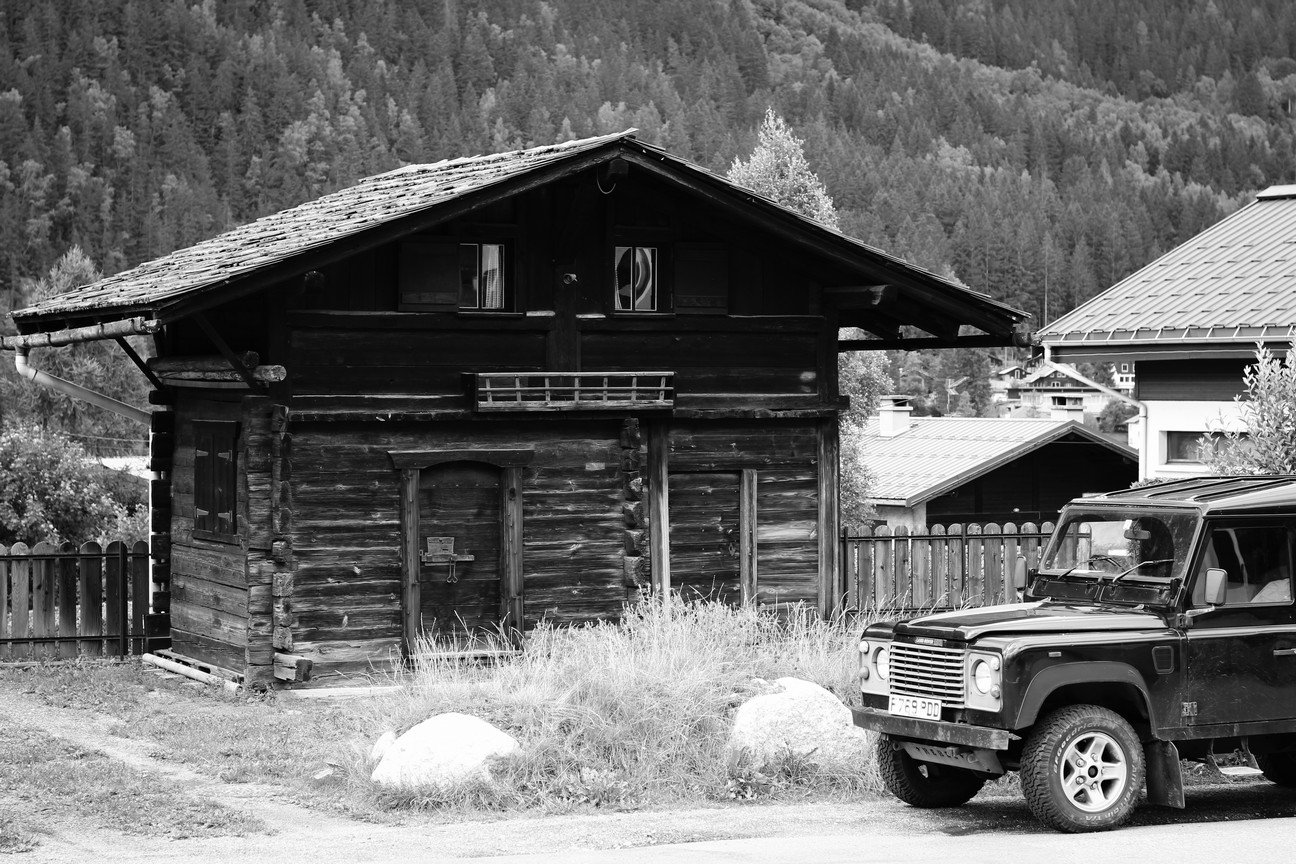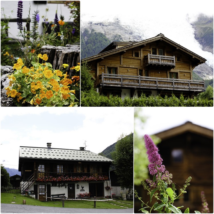 在青年旅館放下行囊後,距離櫃檯上班的時間還有大約兩個小時,我們拿起比較重要的行李,開始探索四周,在我們踏出青年旅館前,在下頭玩耍的一群小孩子中突然迸出了一聲:「你好!」不知道是不是我們對於中文的思念造成了錯覺,我和 L 相看了一眼,決定當作誤聽一般頭也不回的出了門;沿路的水井都是取之不盡的山泉水,喝來沁涼,想起台灣所販賣的礦泉水,標榜著來自阿爾卑斯的冰泉水,曾經是那麼奢侈的事物在眼前卻多得讓人無法珍惜,而我與 L 的在夏慕尼午後的這趟小踏查在一個岔路口後決定分頭進行,我繼續往原本的溪水聲走去,想要將剛才沿途所見的木屋和花草都給收進相機裡頭,眼下剛才在澆花的老婦人還在,而她身後的木屋正是阿爾卑斯地區獨有的一種景致。