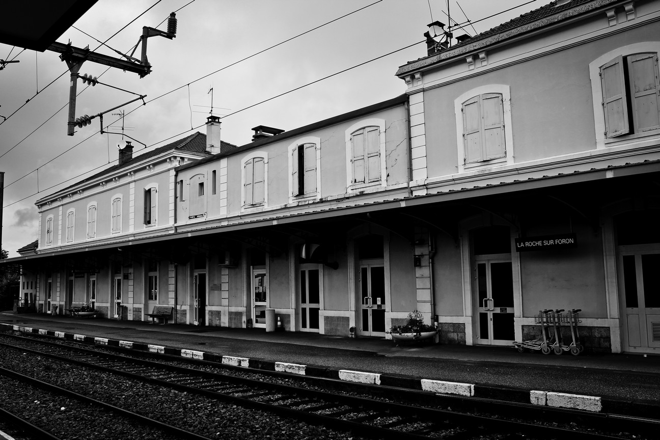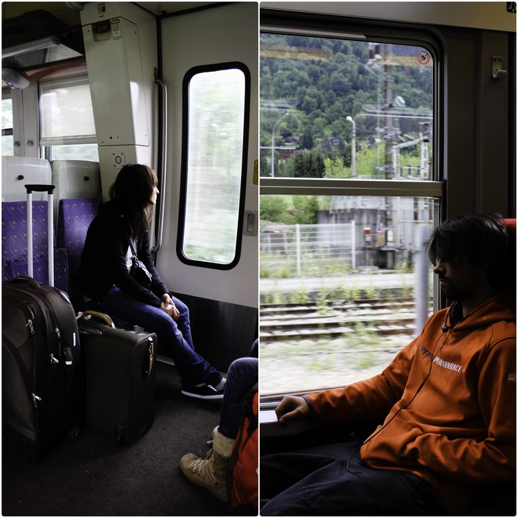 大背包們倒在月台上氣喘吁吁,而我們在轉車的過程中逐漸感受到不同的空氣氛圍,即使只是幾個瞬間,也總是貪婪的看著樸素卻有些特色的月台,偷偷瞄著四周等待的人們,然後聳聳因為太沉重而有些僵硬的肩膀。途中經過 BonneVille,一如其名的美好村落,我們擦肩而過,然後搭配著鐵軌縫隙間那種似有若無的故事感前進著,帶著這種時空的斧鑿痕跡轟隆隆地前進著。