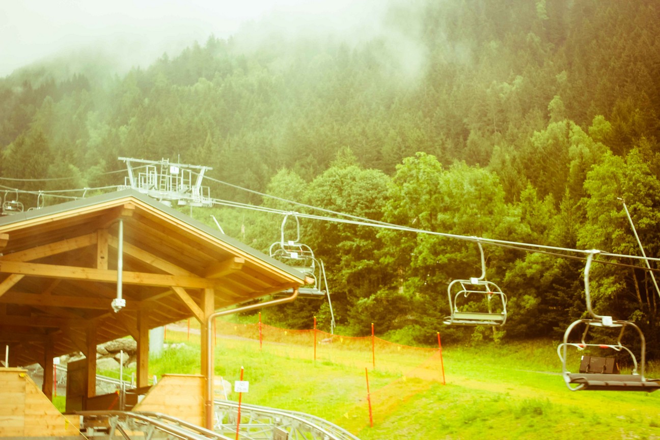 在市中心下了車後,望前走不遠就是遊客中心,城鎮的規模並沒有想像中的大,地圖上複雜的圖案記號卻也都只是幾步路之間的事情,看著南針鋒上頭滿滿的雲霧,我們決定先往冰河去,在法國國鐵的車站後頭有另一個小車站,裡頭就是前往蒙坦威德山的小火車,山間火車總共只有兩節車廂,在山路蜿蜒中緩緩前進著,沒過多久車內的窗戶全起了霧氣,估計是海拔和室內外溫差造成的一種懸疑感,車內的小孩不時用手擦開窗戶上的霧氣,然而過沒多久就會有新的水珠凝結,小孩不斷地嘗試直到她發現窗外也是滿滿的霧氣才宣告放棄,小孩的父親卻同時以另一種相當讚賞的眼光看著自己的小孩,似乎為了他的不屈不撓有些欣喜。