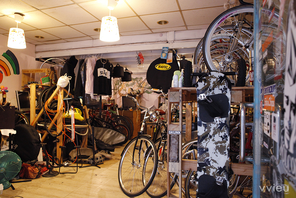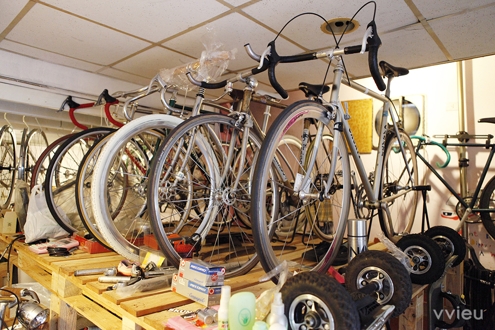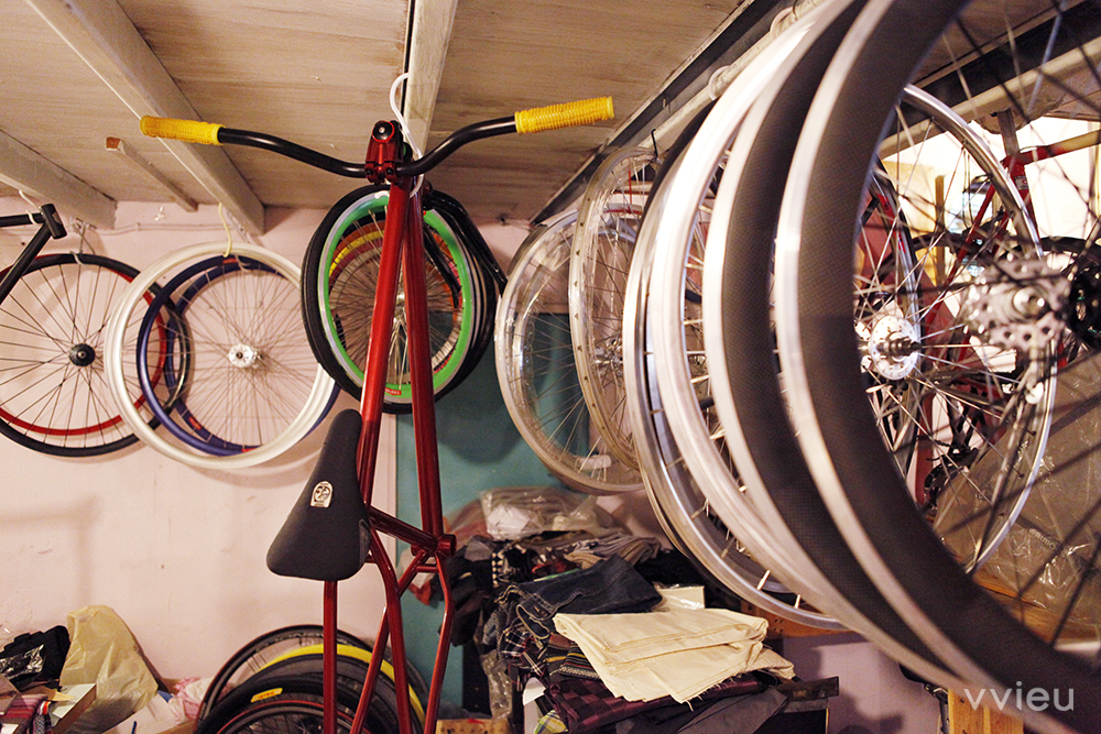 在民生東路藏著一份生活態度,四個階梯走入店門口,琳琅滿目的東西,是由各式的零件、車架所堆疊出來的自由。店內結構化的車架,整齊擺放在木架上,數不清的輪胎條,從紋路上看出他們已經走過許多地方。放棄經營 14 年的咖啡店,只因為愛上了單車的愜意生活,重新定義了自己的人生價值。