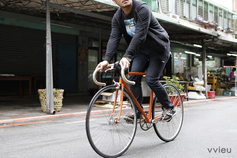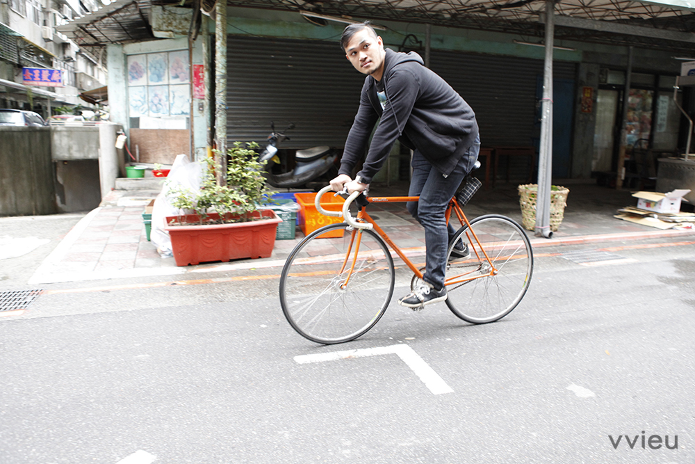 那時候感情與生活比較不順且壓抑,經常看見同學及玩板的朋友 Po 一些玩板的照片,突然發現照片背景中那邊怎麼有一台車會滑來滑去,就好奇並且問朋友,問到它叫 Track Bike,並馬上被它簡單結的構吸引,我找遍所有的車店,但都沒有半台;那時一到車店就對老闆說,我想要一台沒有煞車的腳踏車,老闆都不解地反問我,這樣的車子很危險,並認為我是個瘋子。