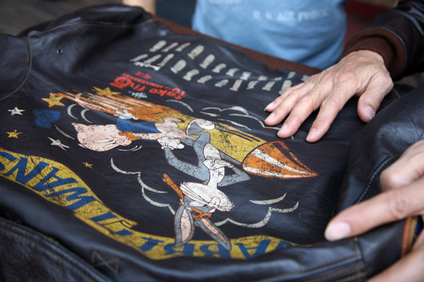 有些人可能覺得就這樣到此為止但我會加入更多值得玩味的細節,舉例來說胸前的彩繪 PATCH 與背後的彩繪一定會有關連,而背後的彩繪圖不論是轟炸機上使用的 Pin-up girl 或者是取得版權的卡通肖像權如菲力貓、兔寶寶,全都是先經過歷史資料的考究自己再親筆重新繪製圖像讓整體變得更為獨特;在 Life style 方面,當自己親自騎著 Easy Rider 中 Peter Fonda 那部高手把的 Harley-Davidson 奔馳在 66 公路上,亦或是與 The Great Escape 中飛越高達65英呎鐵絲圍籬那經典的一幕的知名替身演員 Bud Ekins 共同重組改裝出那台凱旋,從實際體驗那樣的感覺到與生活、興趣的結合中發掘更多的可能性,也因此 Toys McCoy 有著更為齊全的產品線並不拘泥在軍服中,反而更像自己生活的縮影吧。」