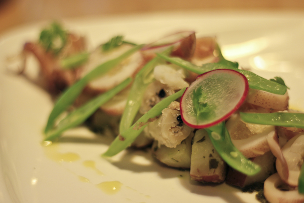 雖說是順應自然環境改變,但在選用食材上,林志豪還是有自成一套的邏輯,在熟知義式料理做法的前提下,他巧妙地從中抽換食材,卻又保有一定的義式風味,如義式青醬和海鮮一向是絕配,林志豪不以常見蛤蠣入菜,反而選用同有海味的蚵,而炙燒鮪魚除了以羅勒提香,還灑上台灣香菜,堆疊不同的香氣。