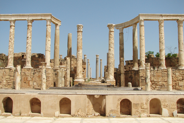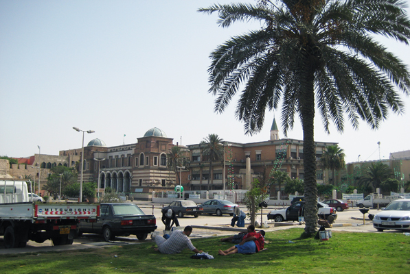利比亞東部早期有個叫做 Libu 的強大部落,曾在遙遠的歷史中統治過埃及,因此古希臘人將這片土地稱為利比亞,後來腓尼基人生意作到非洲而發現這塊土地,再由希臘及古羅馬人經手後輾轉落入阿拉伯和土耳其人的統治;以最近的歷史來說,非洲被歐洲列強如餓鬼般分食後,利比亞掉入了義大利人的小口袋裡,後來在帥氣的 Omar Mukhtar (註二)的帶領之 下,成就了利比亞王國的獨立,但是在短暫的十八年及一任國王後就被當時是名軍人的格達費推翻,成立了現在的利比亞;然而到了革命後四十年的今天,格達費還是利比亞的國王總統,這也就連接到最近新聞炒得火熱的利比亞動亂,許多民眾認為現在的生活不如當時國王的時代(格達費可能會說這都是氣候變遷所造成),因而會看見王國時代的國旗當作今日革命的象徵性物件。