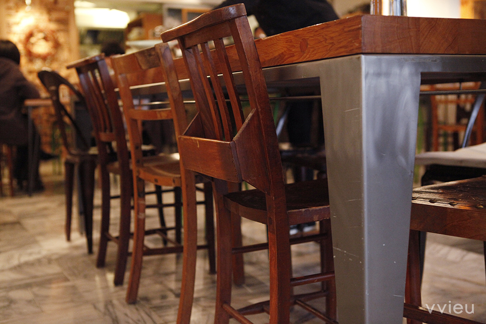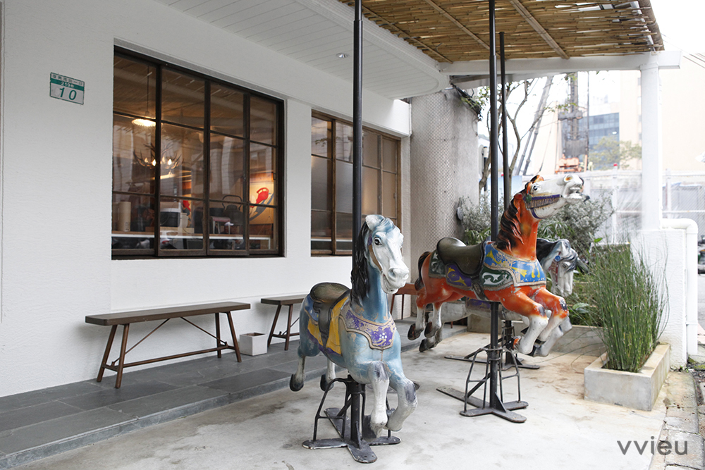 除了在餐飲食材上的用心之外,從餐具、擺盤上細節下功夫,環境上的設計讓人可以安心待在這裡,你可以看見一些老傢俱、特色商品擺放在周圍,寧靜的氣氛很適合放鬆心情。外頭的旋轉木馬讓過路客停下腳步,進入後,寬敞的室內用餐空間,來點沙拉或是義大利麵就很享受。