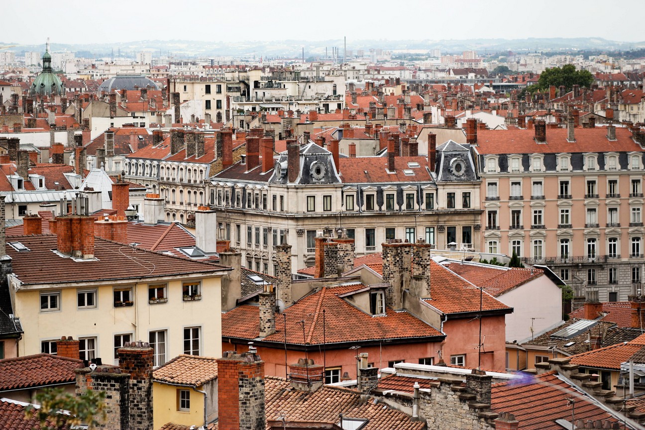 我們隨著孩子們在山頭上喘息著,一面看見城市的全貌,發現這整片的紅磚屋瓦加上兩條河流從中間橫貫而過,赭色的城市帶有幾分古典,而水波之外是被涼風拂過的城垣,城垣內則是矗立在各個屋頂上頭參差的煙囪,煙囪到底也是里昂的特景之一,鱗次櫛比的煙囪是過去居民取暖的工具,即使因為環保而用電暖爐去取代它,煙囪也依然保有原本的功能性,除此之外每座煙囪或多或少都有些不同,就像那看似一致的磚瓦卻有著鋪排上的不同,也因為這些同中之異而讓整個城市鮮活了起來。