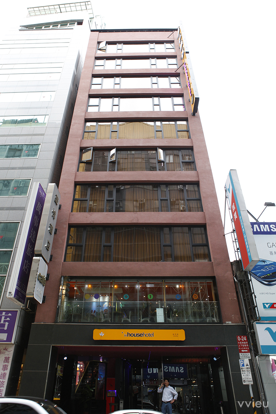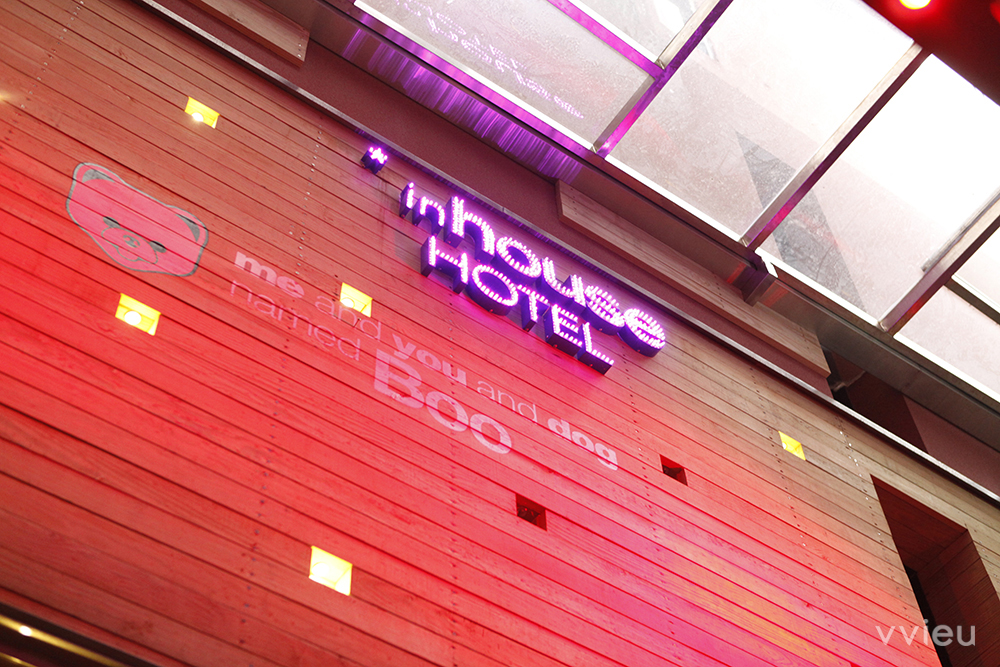 *inhouse hotel 中文取名為薆悅酒店,位在最熱鬧的西門町,逛街、看電影或是吃飯都很集中的一個文化地點。雖然現在年輕人玩樂的地區慢慢移到東區和信義區了,但西門町終究是發展的源地。創辦人 Pepi 與 Yanson 聯手完成這個計畫,一心想把精品酒店這個概念帶進台灣。他們覺得復古味道的歷史與新鮮的科技結合是一定要的,而且在開始之前做了很多研究,想把老台北煥然一新地呈現出來,特別在建築物外觀全部鋪上紅磚。