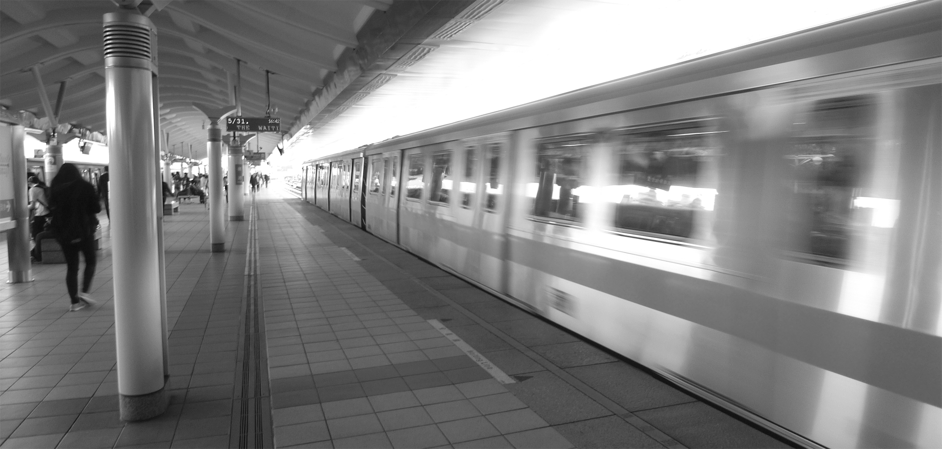 在所有的都會中,捷運站/地下鐵的月台總是忙碌的。時光在這裡交會,日子從這邊溜走,而踏上月台的人可能匆匆,可能茫然,可能正百無聊賴地等待時間流過,也可能一身疲憊。月台上的人潮每兩三分鐘為一個單位、聚攏又舒散,血球似地,彷彿城市的脈搏。而那天為了拍這張照,我還一次次遇上那「真空」——每一回有短短的幾秒鐘,這月台就像放學後的教室走廊,無人煙,只有更多的喧鬧在無聲迴盪。