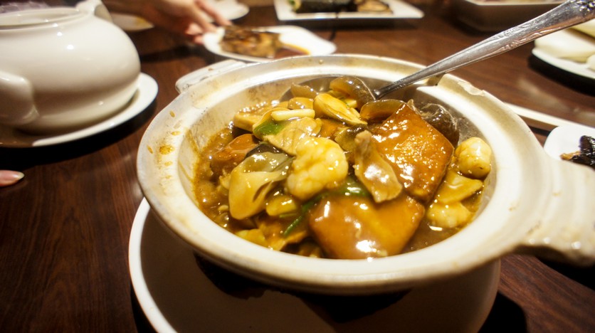 記得一次跟朋友上館子,先是頭牌後是湯,問我還想點什麼,看了半天找到一到「釀豆腐」。我問還有沒有,店裡的人看了一看,回頭問了一些什麼,答說現在馬上可以做,問我等 20 分鐘可以嗎?當然可以,反正我們也不趕時間。一面吃著先上的菜,一面問著朋友剛剛幾個店員在討論什麼。朋友也不懂,找來一問才知道原來他們是嶺南來的客家人,試著問了幾句客家話,彼此都聽不懂。他們解釋這裡的釀豆腐是自己做的,豆腐賣完了,師傅特意去市場買。我們覺得這怎麼好意思呢?他笑說沒關係,這東西一次要做三十個,賣不完,就變成他們的宵夜,可以帶回家給孩子當點心。