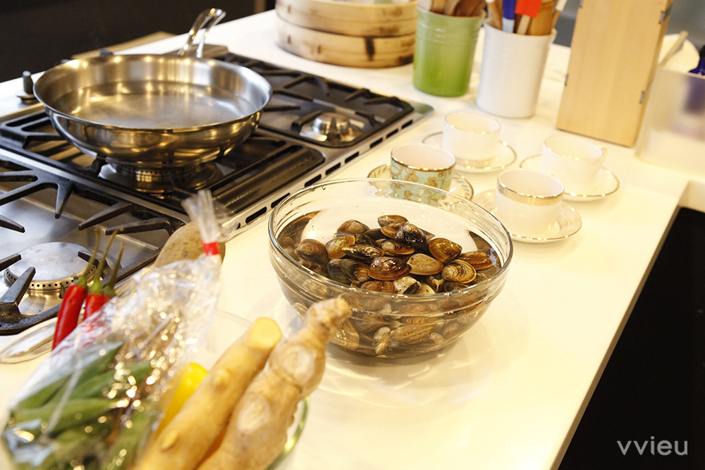 A:其實就是用一樣的食材做出不同國家的料理,例如白酒蛤蜊義大利麵撒上平葉巴西里,換做日式口味,就會做清酒蒸蛤蜊,配上一點奶油與蔥花,台式口味就用米酒與九層塔炒蛤蜊,配上白麵條就完成了。