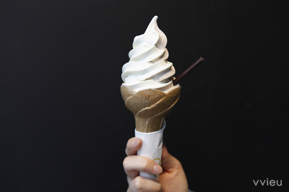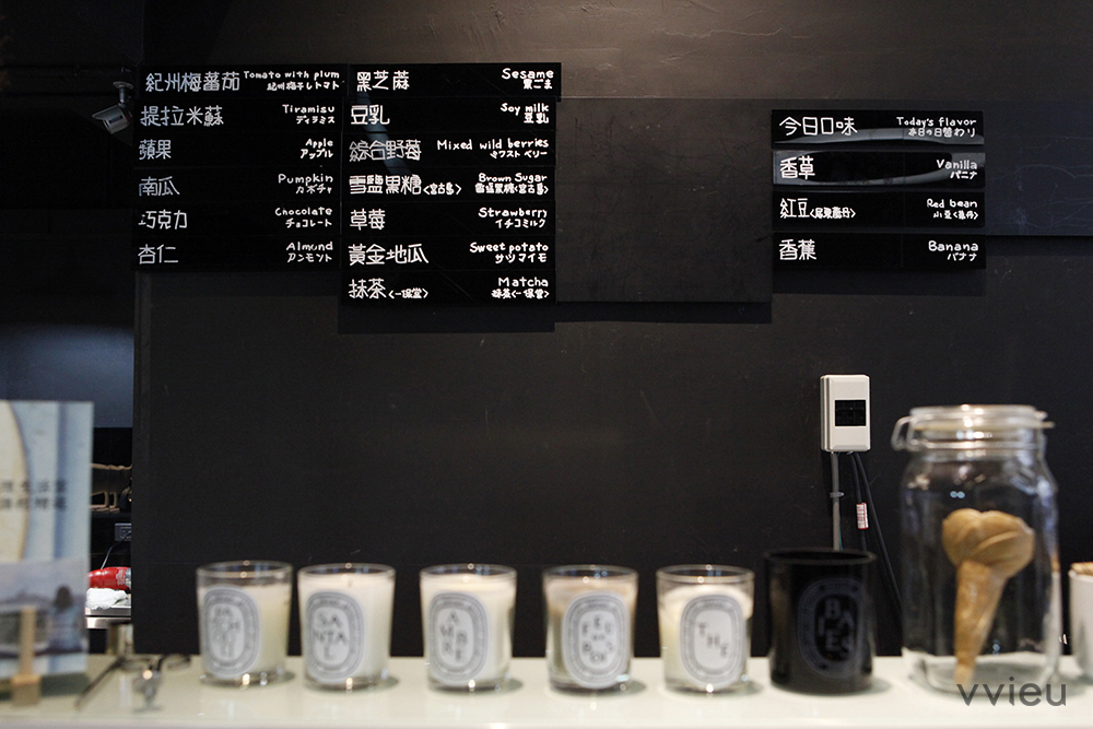 A:若要提及我們冰淇淋的特色,其實可以從我們的品牌精神出發。不管是目前推出的霜淇淋,亦或接下來的冰淇淋及雪酪,都希望帶給每一位前來品嚐冰淇淋的朋友們,能在享受美味外,同時也能吃出健康。所以我們特別著重在原物料的選擇上,新鮮蔬果配合時令、地區性著名品種,例如:日本栗南瓜、大溪地的香草夾;其它口味則選擇經典品牌的品質加乘,例如:沖繩宮古島的雪鹽黑糖、京都一保堂的抹茶等。另外值得一提的是,我們特別針對「讓眼睛吃冰淇淋」的想法,開發了幾款護眼的冰淇淋口味,如:藍莓、玉米等。