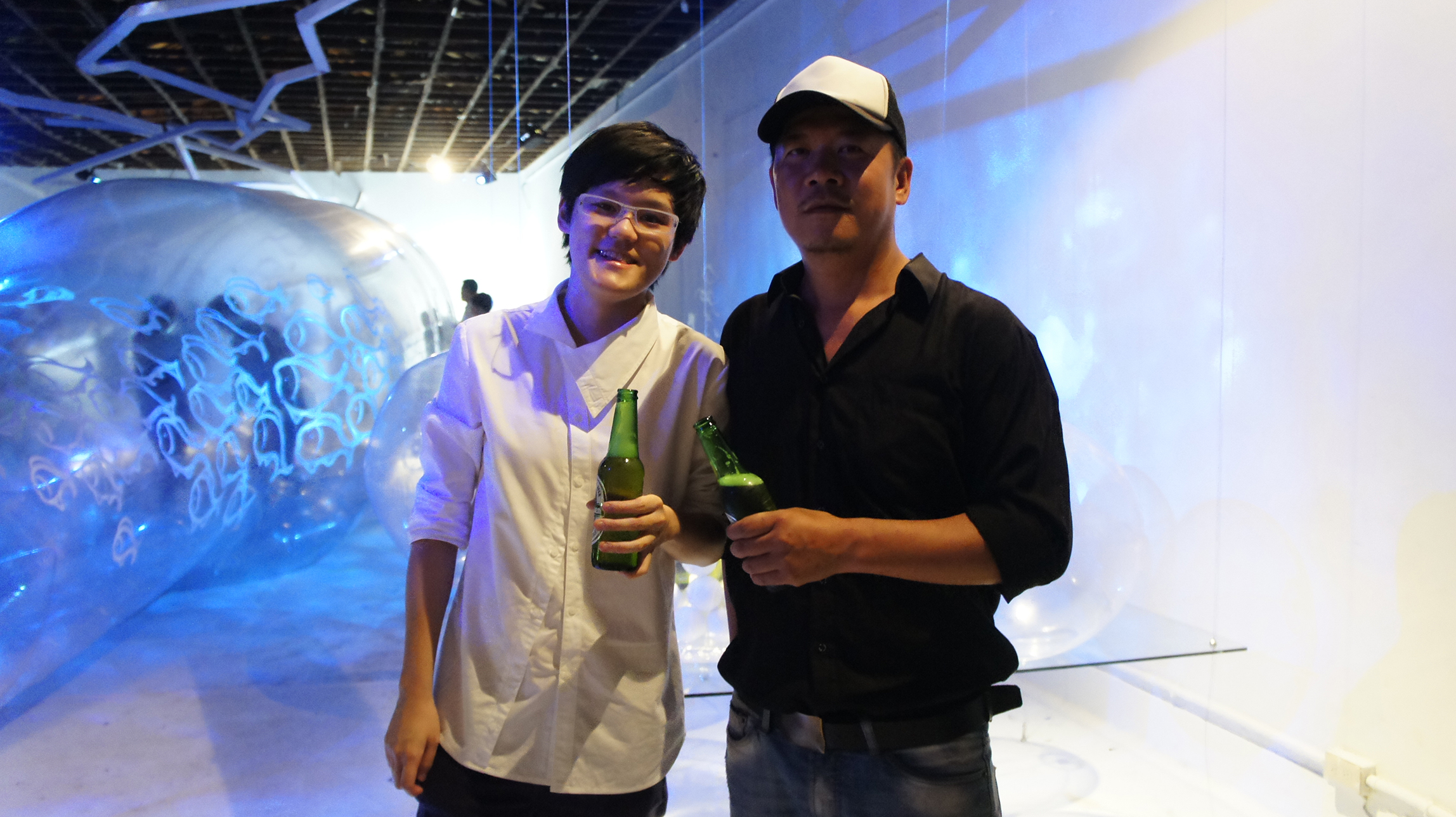 邊喝著啤酒邊在 Party 中走著時,腦中突然閃過許多在國外的畫面,頓時有種回到倫敦看展覽的感覺,很輕鬆,很自在。邊跟自己的朋友聊聊天,邊欣賞著藝術品,邊和創作的藝術家聊著他們的理念和未來計畫,聽聽他們下一步要 Bounce 往哪個目標,哪個夢想!