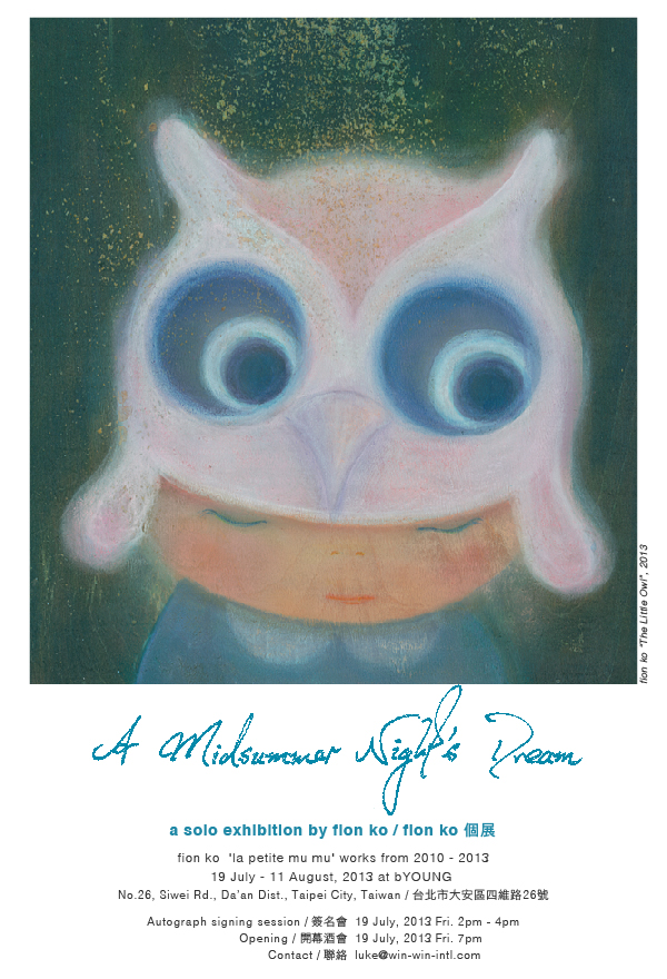2010 年的夏天,香港藝術家 Fion Ko 第一次在台北發表了她的作品,今年帶著「A Midsummer Night’s Dream」個展重回台北:這是一個 Fion 希望跟台灣所有朋友分享的故事,故事的內容很單純,都是滿滿來自創作的樂趣、溫暖、浪漫和眼淚。
