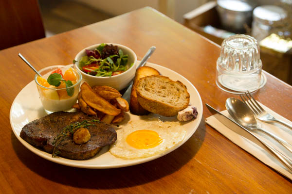 而人氣早午餐的豐盛內容更是令人垂涎欲滴──一整塊香嫩的沙朗牛排或伊比利火腿、新鮮蔬果沙拉、特製起司抹醬麵包與香甜的水果優格。FARAMITA 用的皆是當令最新鮮的食材,對料裡的風味更是要求,據說西班牙伊比利火腿需要當地八到十年的熟成、風乾,才會孕育出其獨特的香味。店內更會針對節令食材的運用,三個月調整一次菜單,想以極少的調味料,帶給顧客最健康美味的餐點。