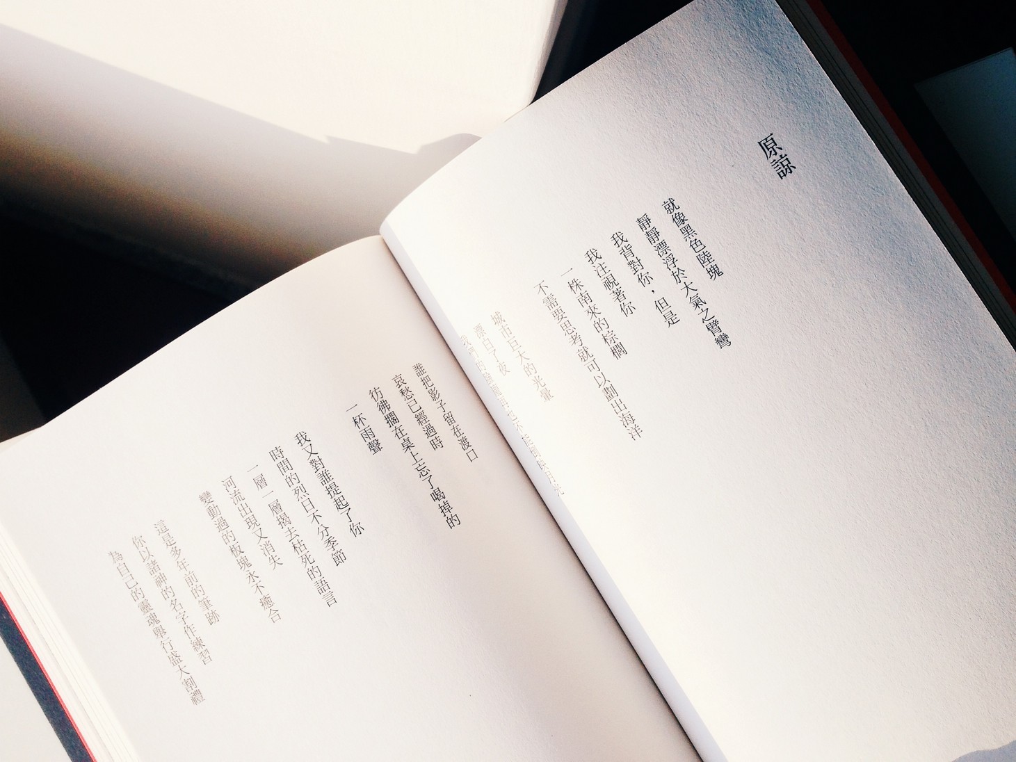 《金烏》是第一本詩集《屏息的文明》刪減修訂而成的,並加了十七首近作。眾人說是精選輯我認為並不是,因為精選應該是每本詩集的精華,合收一秩。這本書比較是最早與最新的混聲與混生,就像《少女維特》那樣把少作與近作並置,成為一種對峙。