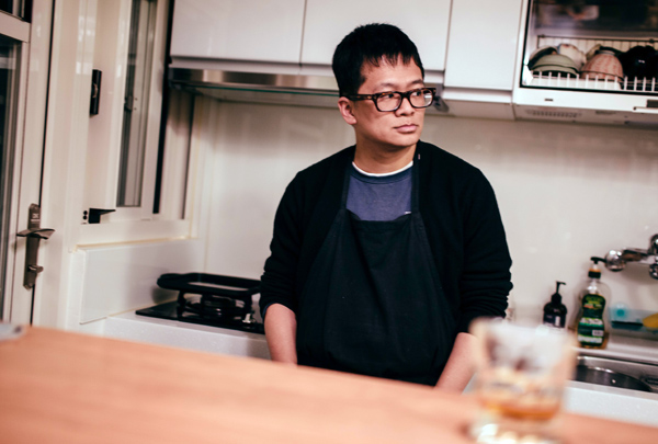 清冷的週日下午,我們來到王聰威位於土城的溫馨寓所,家中溫黃的燈光與木質傢俱十分契合,長長的工作桌上攤著他正構思著什麼的筆記,一旁雅緻的吧檯上則陳列著即將下鍋的食材,新養的小貓據說會在主人下廚時到處搗亂,所以暫時被關禁閉,王聰威圍上特地請作家友人黃崇凱自日本無印良品帶回的圍裙,沖了一壺玄米茶招待我們,親切得如往常的會面;然而當一轉身面對鍋爐瓢盆、枝節的料理步驟,倒又像對待工作、創作一般,認真嚴肅了起來。