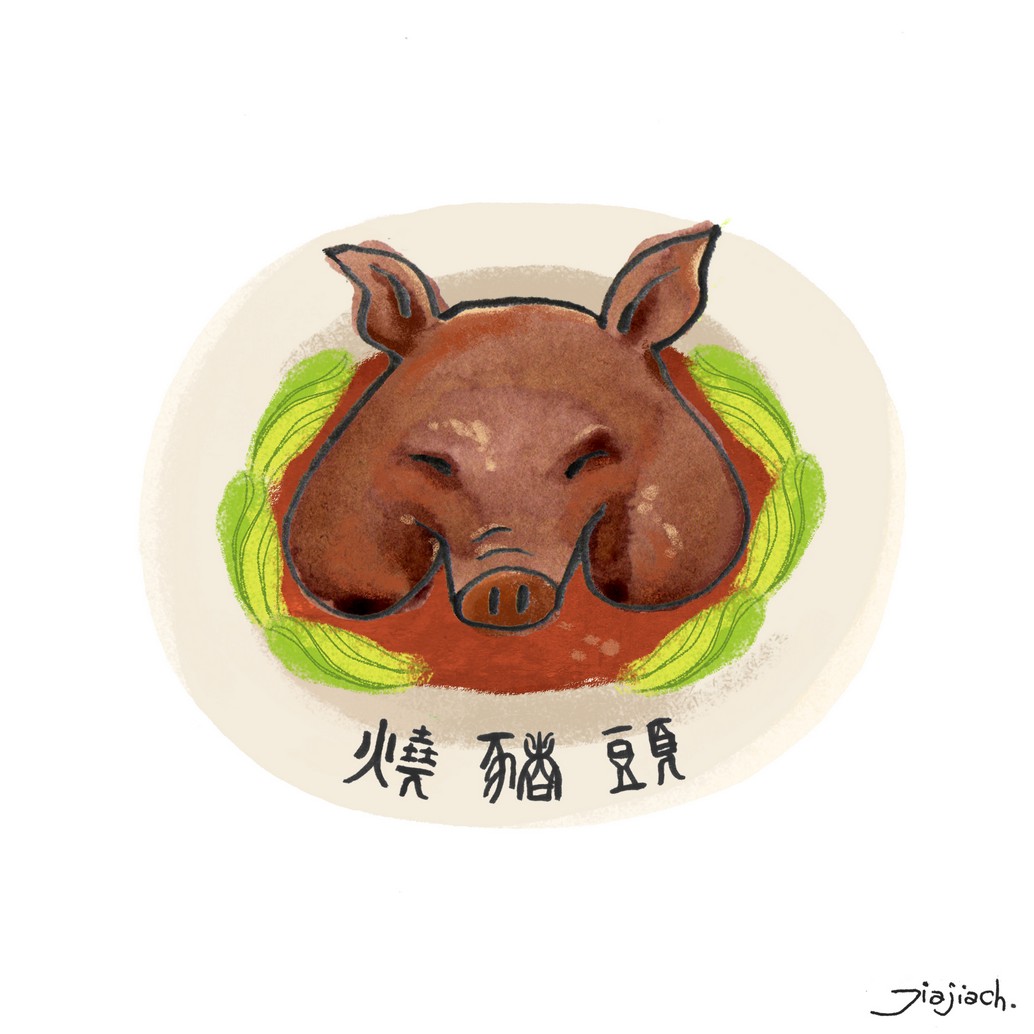 然而,曾經貴為大三牲的供物如今早已被視作邊角料,今人多以豬肉代替豬頭祭祖,若真正端上一盤燒豬頭恐怕還要覺得野蠻噁心呢。豬頭售價遠比豬肉低賤,話雖如此,一般人卻少買回來自烹,多半只在路邊小攤子上賣的黑白切零星出現幾樣供客夾選。翻閱歷來作家的食記秘譜,印象中只有讀過焦桐拎著一顆豬頭回家料理,想來文人多自重身分,扒燒豬頭與上解剖課簡直差不了多少,大約不情願對付、也實在對付不來。