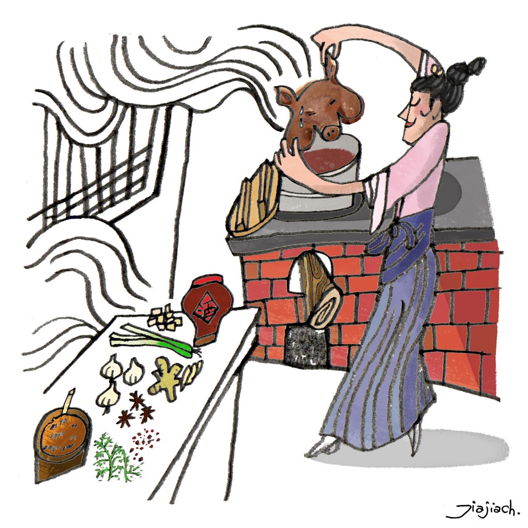 宋惠蓮確是燒豬頭好手無疑,不知她身世為何?書中對此並未多加著墨,只交代了幾件風流帳,事實上,個人歷史於窮奢極欲的西門府而言恐怕無足輕重,縱有過去,往往也不堪回顧。稍留心讀《金瓶梅》便可察覺西門府的口味整體上較偏重北方菜,然而,這道燒豬頭卻與揚州淵源不淺。
