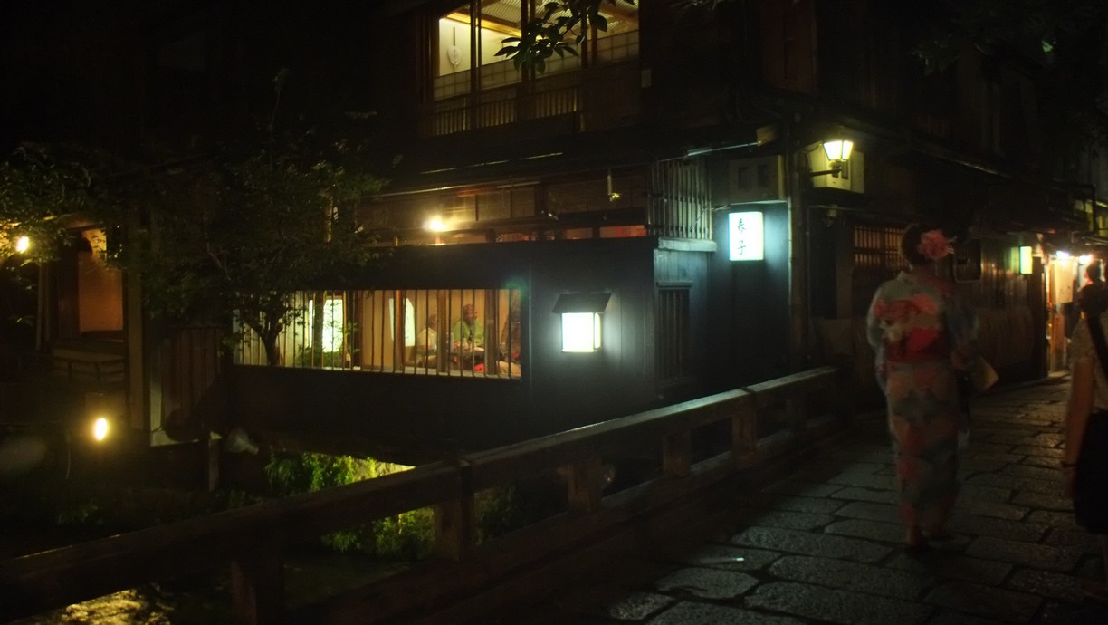 今天的滷牛筋一樣很好吃,非常適合不是日本人但熱愛日本文化的外國友人哦,你看,隔壁是兩個義大利人,後面是一群英國來的學生,沿著河邊的位置,穿著西裝的一群人黑頭髮金頭髮,說著英語唱著日本歌呢。唱著唱著站起來了,一桌一桌敬酒。