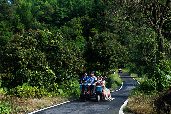 (農務車行車速度緩慢,正好讓身心都慢下來,品味這難得的亮麗晨光。)