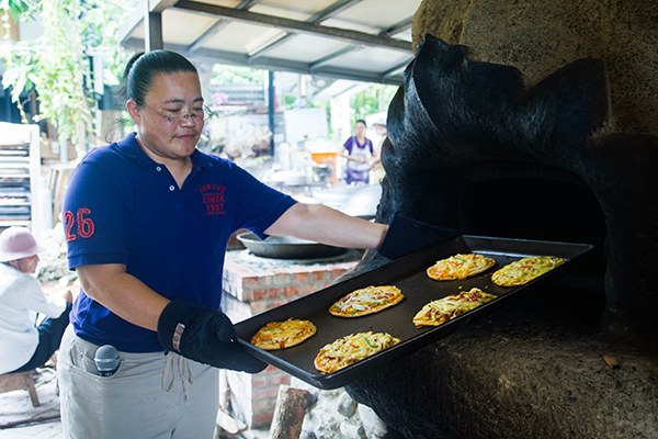 窯、灶的保溫效果極佳,無需使用太多柴火便能達成功效,十分節能。由於火候控制不易,傳統磚灶料理以「蒸、煮、滷」的烹調方式為主,燉煮大灶湯時,放上蒸籠便能順便蒸道絲瓜鑲豆腐,的確省時省力。燒窯的木材特地選用龍眼木,不僅耐燒且取得便利,出爐的麵點亦得以散發特殊的風味。在這裡,四處可見向簡樸生活取經的巧思,社區婦女也從各種手做勞動中,尋得定錨的力量。