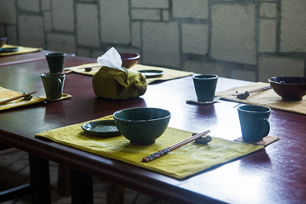 (現場使用的餐具皆由當地婦女親手燒製。)