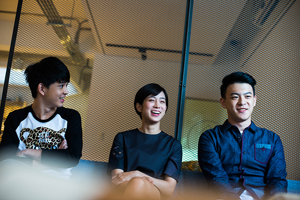 這天下午,在颱風剛走的台北街巷,一間有亮光大窗的咖啡館,我們訪問了主角群的其中三位:飾演林永群的鄧育凱,飾演葉一凱的鄭開元,和飾演朱靜怡的溫貞菱。兩個大男生都是第一次演戲,而比他們年長兩三歲的溫貞菱,已經是電視劇和電影界的熟手了。那天一到場,我們就發現大陣仗的工作人員、造型師在一旁待命,顯然三個年輕演員(以及阿吉導演)已經經歷一整個下午的訪問和宣傳。不過,有別於我們對素人的青澀想像,更有別於少年得志的自負和嬌氣,在正式坐下來、聊進主題後,他們藏在青春無敵的光芒背後、那真誠又不浮誇的孩子本性,就被召喚了出來。
