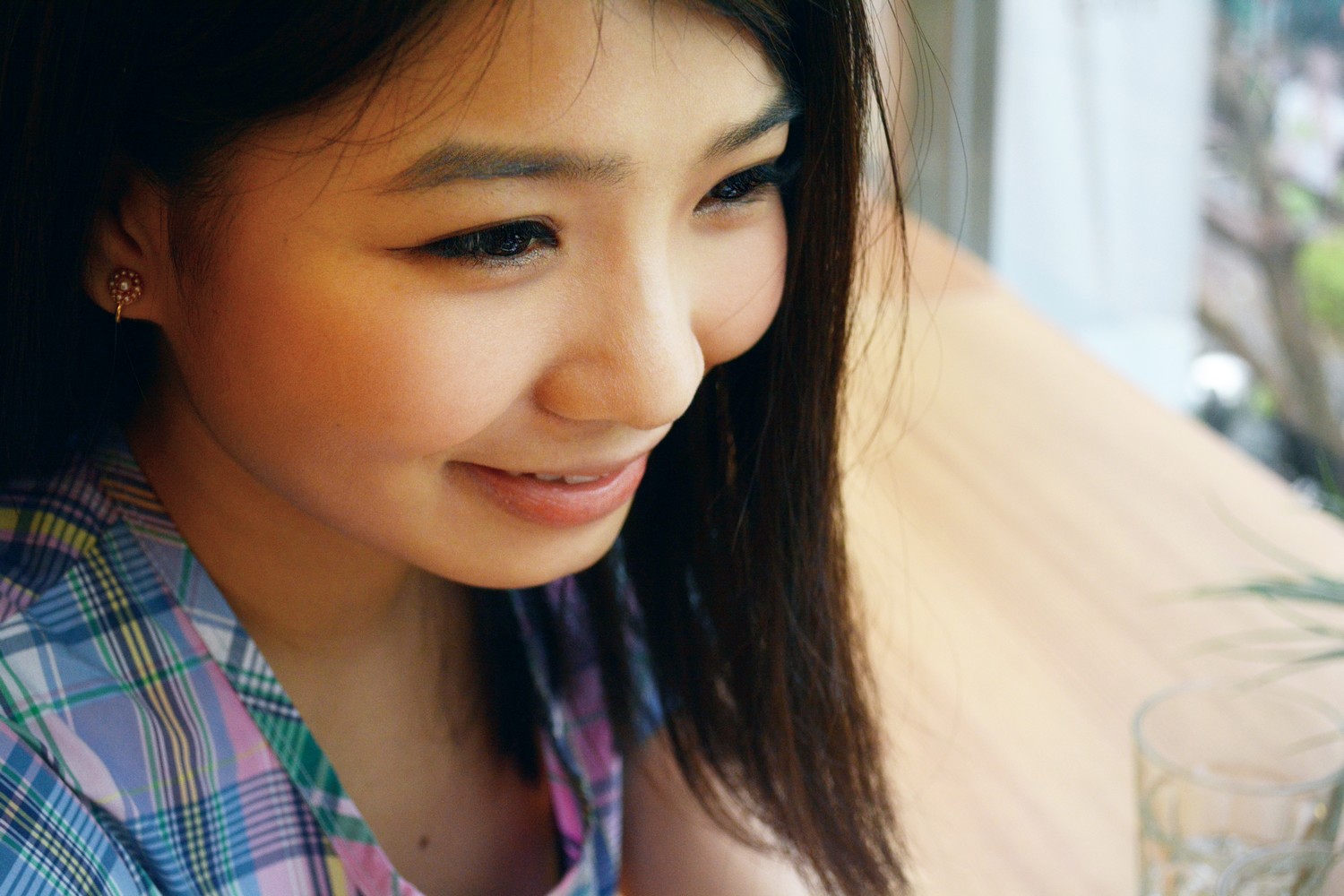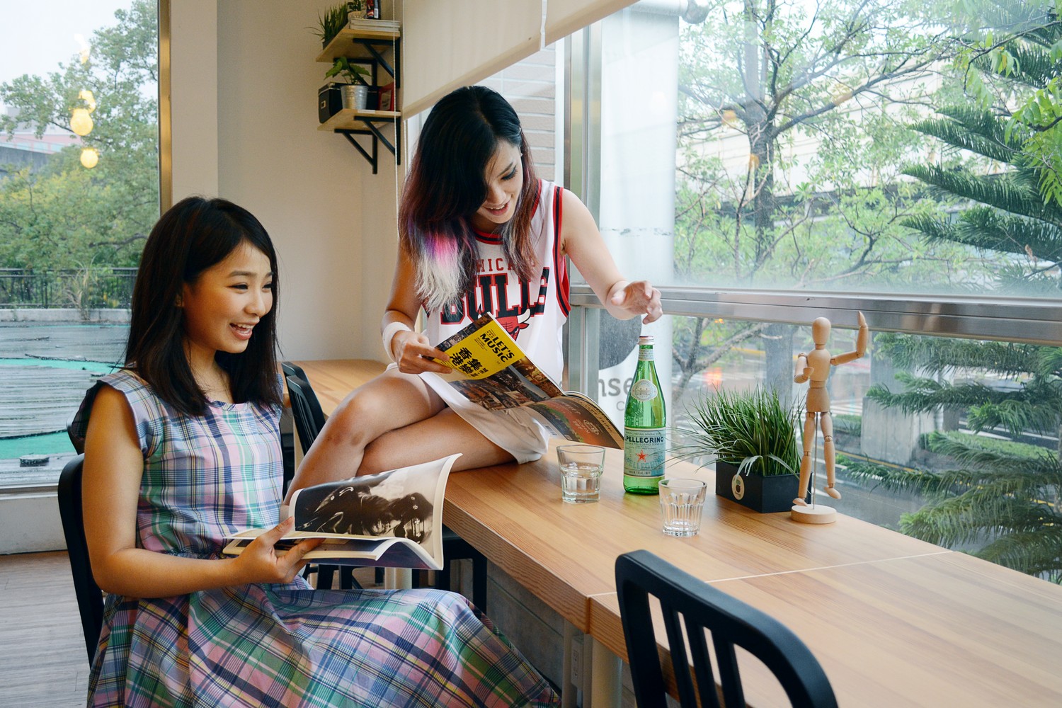 明明是陰雨的下午,看賴盈螢(辣子)身穿籃球衣大咧咧走進來,彷彿她披戴而來的永遠是無雲的晴天,恣意而張狂。鍾琪一身藍色粉彩格紋洋裝甜美自成一個溫暖的小宇宙,她在其中隨意翻手成風、覆手成雨,悠然自得。她們身上的那種理所當然,好像無時無刻都有聚光燈打在她們身上,隨著場景跳躍、情緒轉換,能夠隨時切換到另一張臉、進入另一個角色的狀態。