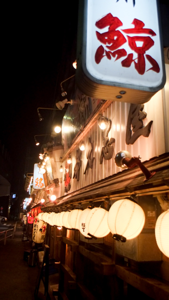 曾經熱鬧的街頭慢慢燈火闌珊,穿越了帶著醉意的人群,混雜的交通,無盡的紅綠燈,終於相見的我們往架著電車的橋下走去。嚴實的橋墩中間藏著一條小小的巷子,在從外表看見角落靜靜地散發著燈火通明。「真沒想到這裏還會有這麼多店。」初拜訪的朋友大部分都會這麼說。躲在一片熄了的燈火之後,這短短三十公尺藏著收集了日本各地美食的十多家居酒屋,算得上東京上班族的最後樂園:便宜的物價,晚歇的店家,美味的料理,冰涼的啤酒。家是我的天堂,這裡是我的第二天堂,也是我在東京最喜歡的秘密基地,可以的話,希望以後也只介紹給真心的好朋友。