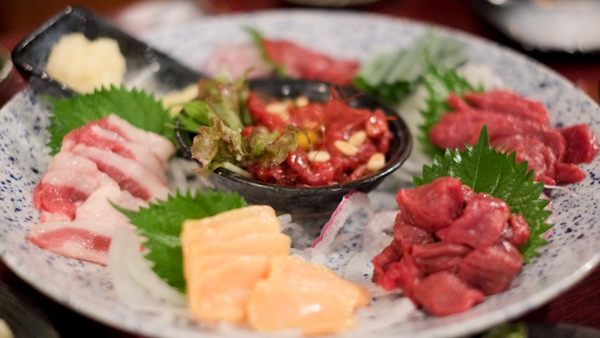 店家們事先溝通只進口產地直送的食材,同時還會避免與別人重複菜色,所以在這裡不論鹿兒島的豬,秋田的酒,名古屋的雞,東北的蔬菜,北海道的魚干,應有盡有。除此之外還有難得一見的馬肉跟鯨魚肉等稀奇食材,不太知道怎麼點的時候就跟著大家一起入境隨俗,會嚐到非常奇妙的美味。