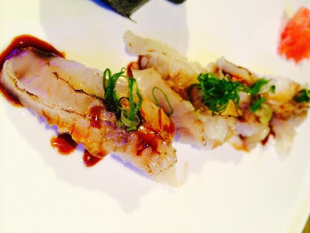 有這麼一次,燒炙過後的鰭邊肉,搭著醋飯,青翠細蔥、些許甘味醬油點綴其上,甜甜鹹鹹的醬汁以及天然嗆辣將油脂調和,把剛剛好懸在一線的平衡維持住了;少一分則肥,多一分則瘦,穠纖合度的美人,就此自愛琴海誕生。」