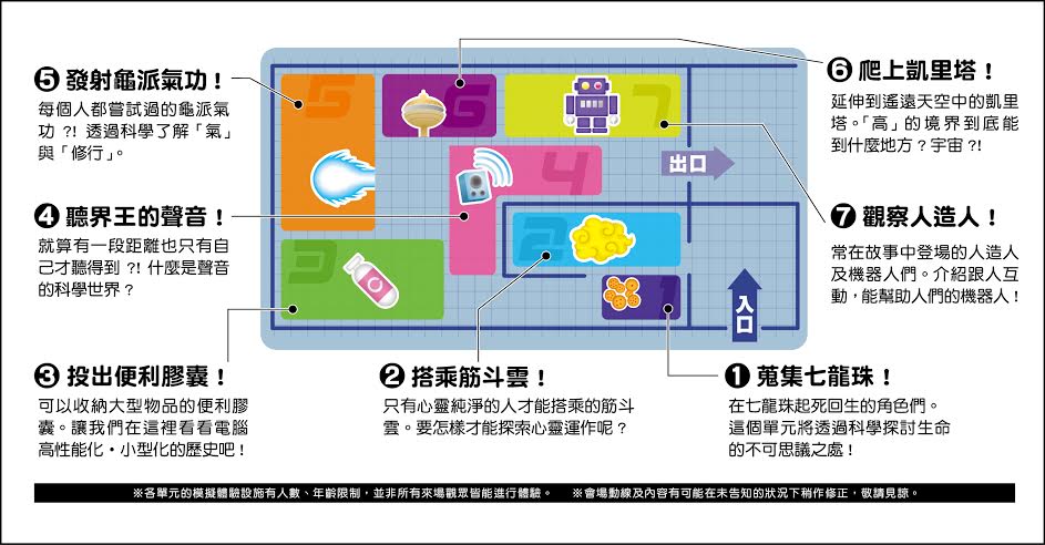 ※ 體驗項目:回答各展區內科學問答題,蒐集七顆龍珠。