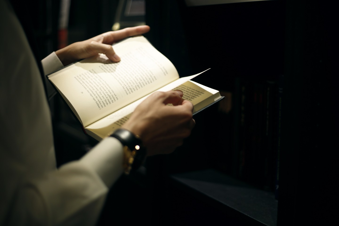 我原以為自己晚到了,接著幾天,無論我如何提早,他都還是坐在那張椅子上──好整以暇,一邊對我招手,一邊拍拍身旁的坐墊,意示我坐下。他腕上的銀色藍鑽名錶,在酒紅的皮墊上閃閃發亮。