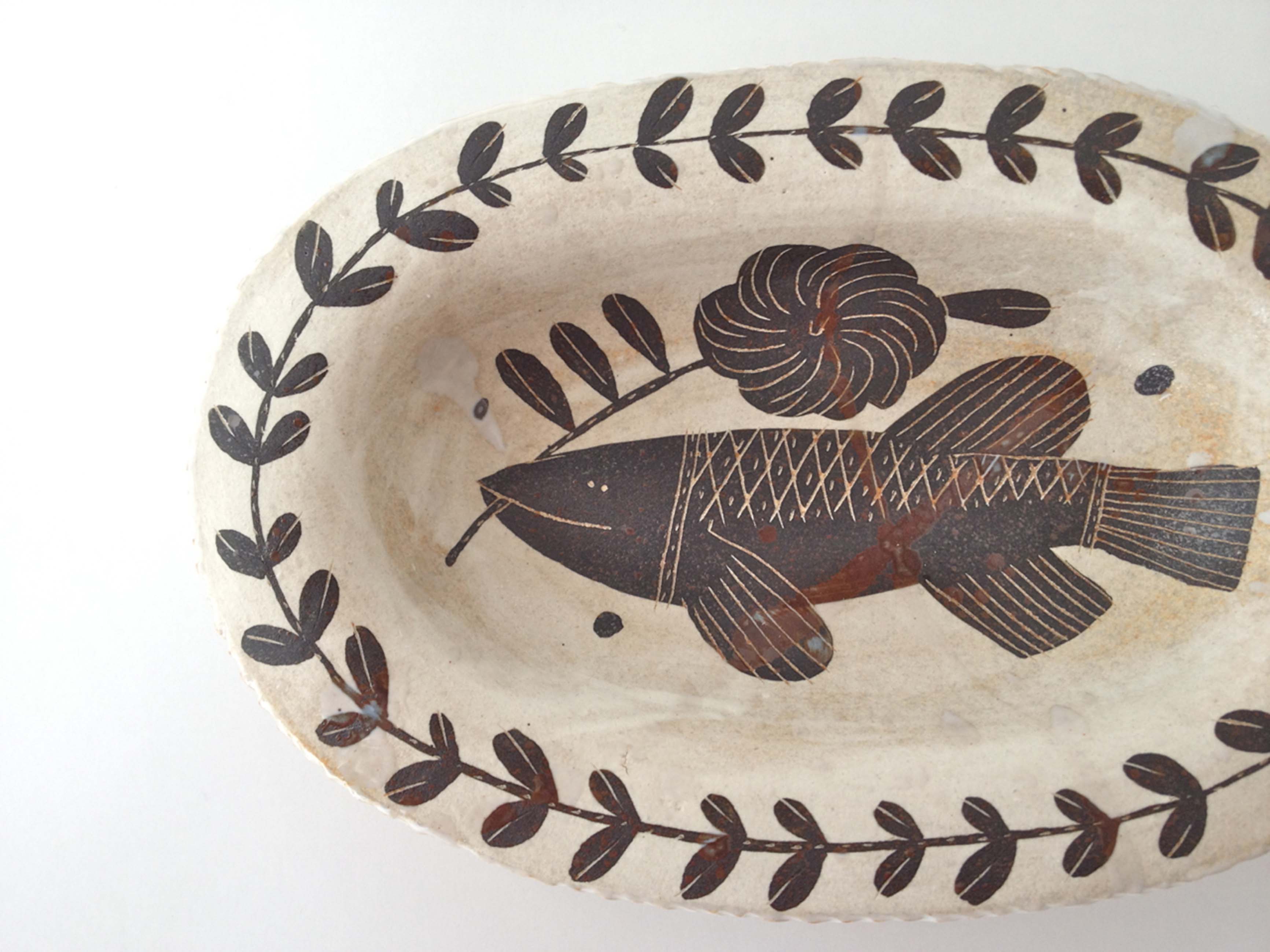 圖案、色彩、形狀、觸感、溫度,融化人心的陶藝作品。此次展示以魚作為主題來製作器皿。魚,一眼撇見富有趣味,圖案也具有強而有力的視覺效果,是一種簡單俐落的創作素材。比起以往的作品,雖以較少的要素加以構圖,但經由鹿兒島睦的描繪,即能一眼明瞭圖案樣式。