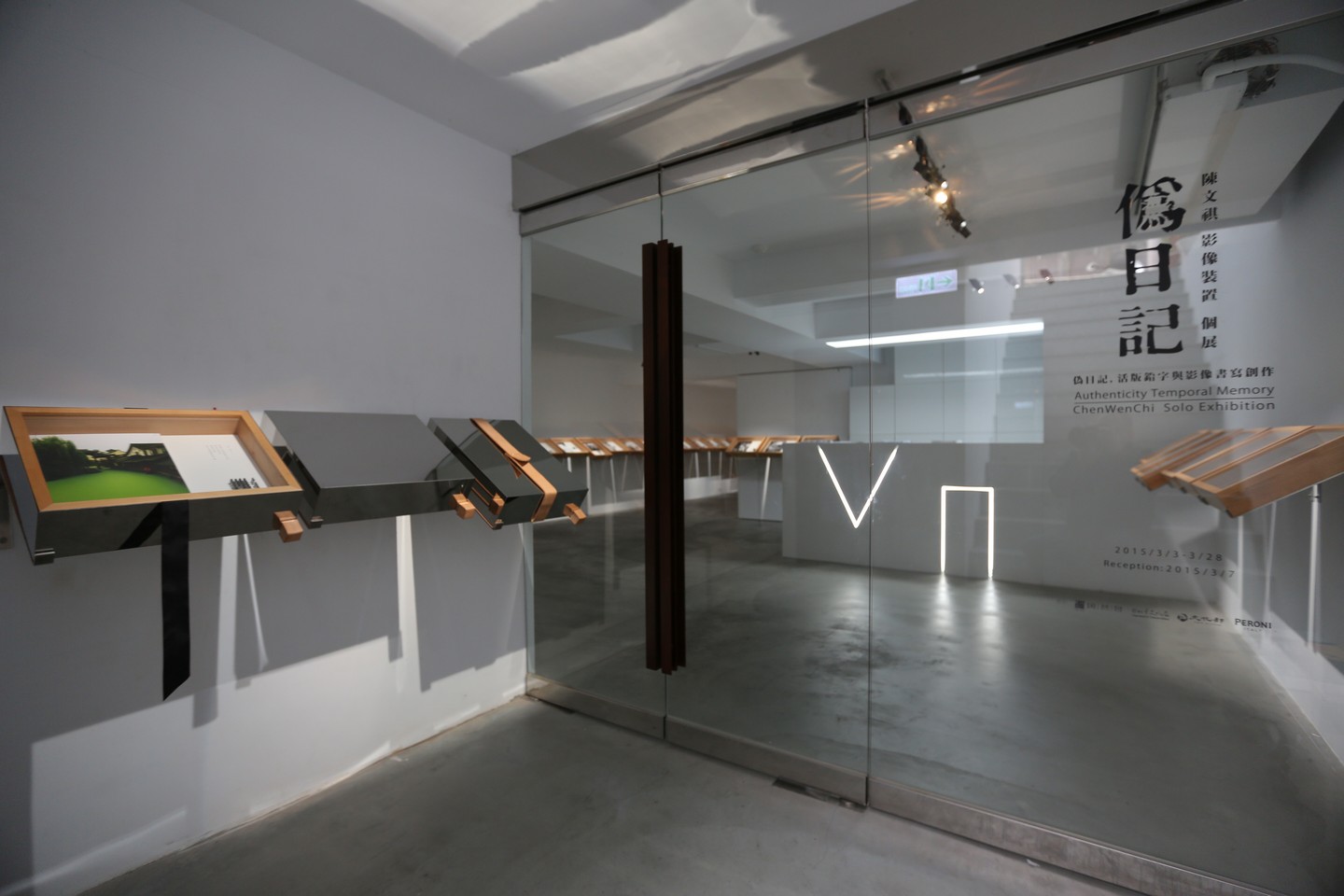 陳文祺在 VT Artsalon(非常廟藝文空間)展出的「偽日記」不免讓人聯想起標本的文學記述,也如同納博科夫對記憶的質疑,這也許就是任何文體本身免不了的虛構特質。如何重新找到屬於自己的記憶,在這個邏輯中就帶著許多編造的過程。這個展覽中陳文祺透過樺木標本盒的形式,將黑白影像與鉛字及其印拓並置於盒中,展出高達百件的影像裝置。在展場中,突出牆面,如一般的標本盒展示,這些作品在閱讀與藝術觀看間產生了曖昧的距離。