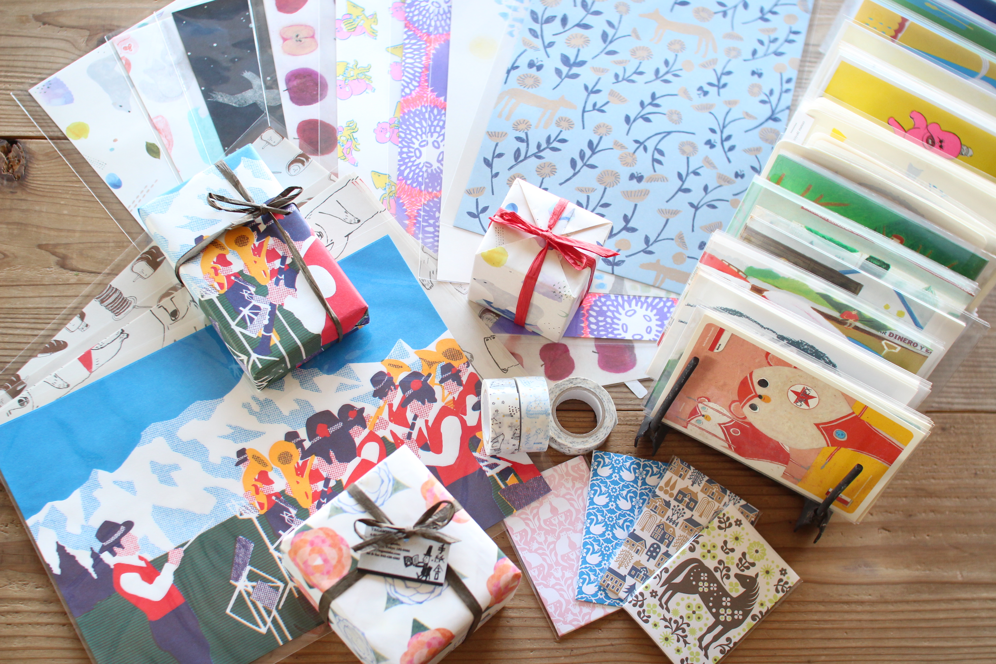 明信片、手拭巾、手帕、胸針、活版印刷卡、耳環、信封組、印章、環保袋、托特包、器皿、小物件、一筆箋、包裝紙,還有更多更多!!