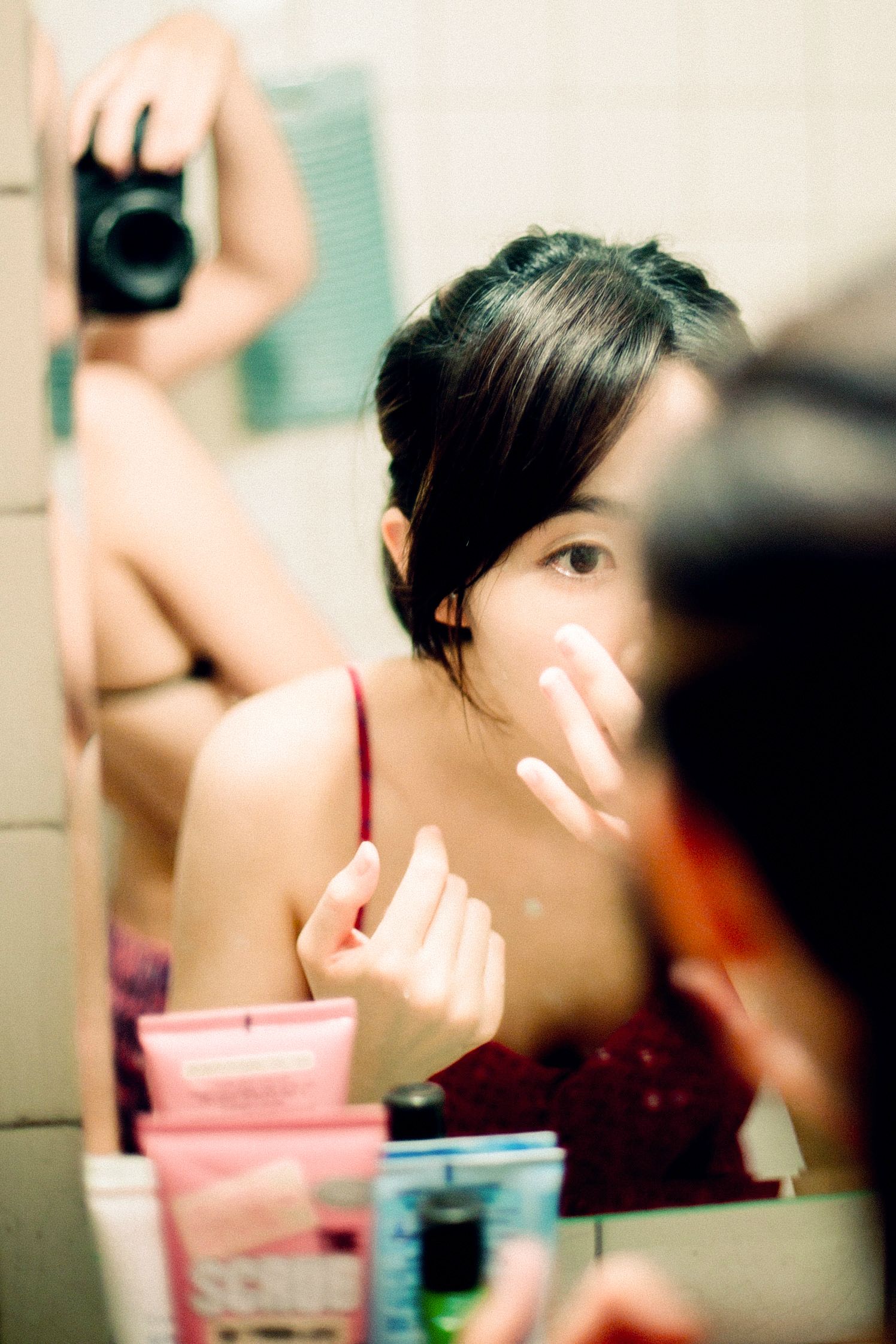 「對我來說,可能不會說攝影和身體很有關聯,是我想拍攝身體,因為拍攝身體對我來說是很自然的。有時候我想呈現幽默的感覺,就會搭配道具,或者是和模特兒一起構思,希望拍起來是有趣的;只是那可能不是我們一般看到身體的樣子,可能是兩個女生互相摸彼此的胸部、或者是自己在探索自己的身體,這些都是我一直很感興趣的主題。」
