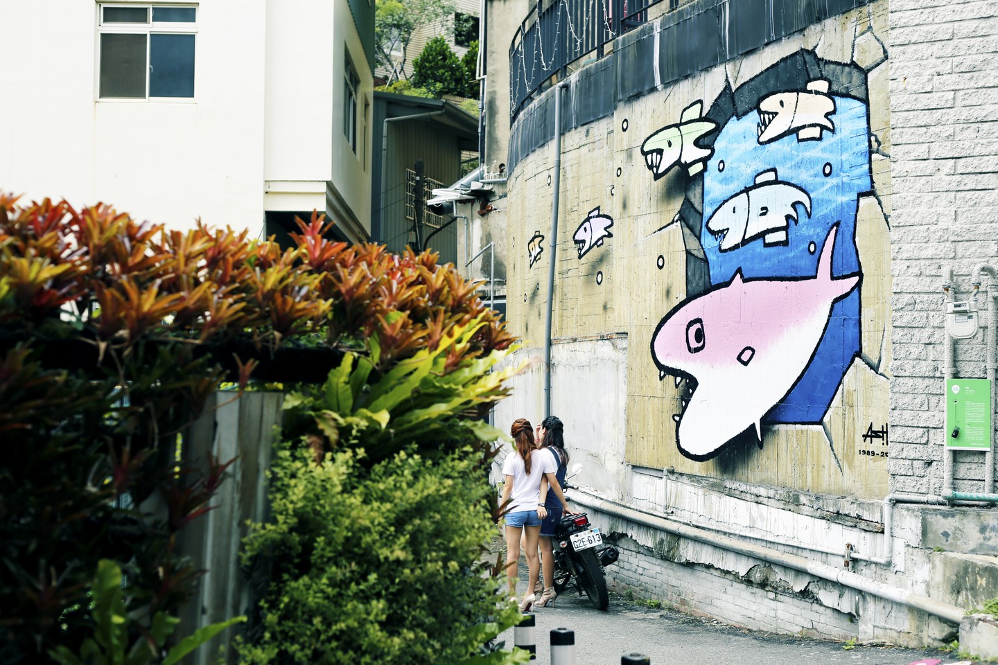 還有居民提到公益路上的人行道座椅,常常變成滑板少年練習的場地,希望可以運用創作讓想像力介入,作些創意改變。有一位年過半百的阿伯偶然提到,「這些椅子長得像魚」,讓藝術家何季澄和 Cowla 決定將石椅改造成不同的魚類,講述五個海洋故事,包含代表著恐懼的鯊魚、象徵親情的小丑魚、訴說毅力的藍鯨等等,透過彩繪設計暗示滑板少年們,人行道該回歸為散步和停留之處。
