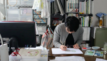 岡理惠子認真創作的模樣(截自:點與線模樣製作所的 Video)