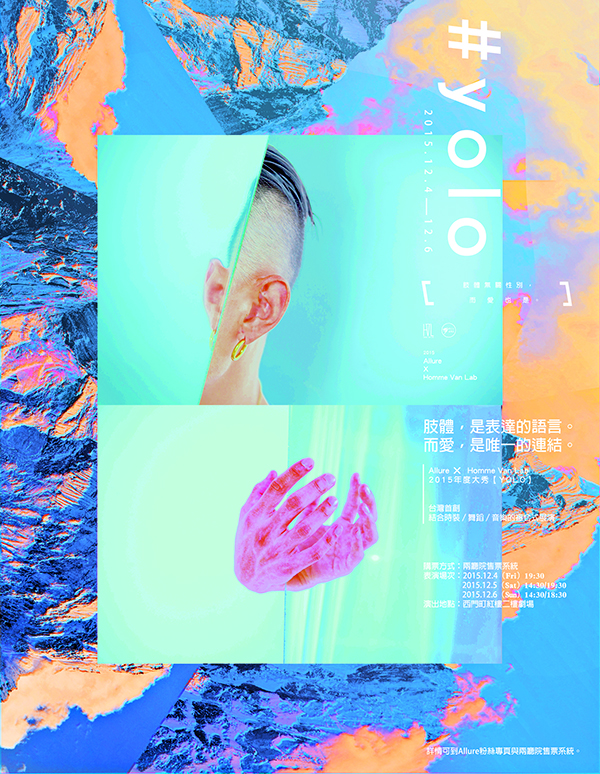 舞蹈品牌 Allure 與台灣服裝品牌 HOMME VAN LAB,以中性的肢體語言,結合中性的服裝設計,傳達對「多元性別」的關注與尊重,將於今年 12 月初展演「全男子」的年度時尚舞蹈大秀──【YOLO】。