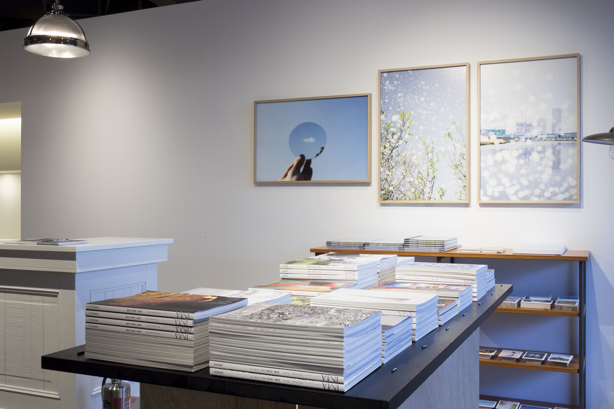 除了每季一刊的紙本攝影雜誌,IMA 更將他們對「與攝影共同生活」(Living with Photography)的理念從平面延伸成立體。於 2014 年三月成立的「IMA 概念店」(IMA Concept Store),就位於東京精華的六本木一帶的某棟現代風格大樓裡。佔地約五百平方米的概念店,其中一半空間是 IMA 經營的攝影藝廊(IMA gallery),主要展出自家代理的日本國內攝影師作品;另外一半空間則展售各國攝影集、IMA 出版的攝影書籍、攝影相關文字評論書,當然還有《IMA》雜誌獨立的小展售區。琳琅滿目的攝影書冊整齊雅緻地擺放在展示架上,這些都是經過 IMA 團隊挑選過後的攝影書籍,每一本都讓人愛不釋手。