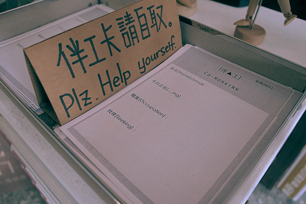 在混 hun 裡,你可以在伴工卡填上姓名、聯絡方式、職業和想尋找的人,假如是文字工作者就可以找尋有文案需求的業主,或者是業主也能找尋有寫作能力工作者。當然,想跨出工作範圍之外,找尋相同興趣的夥伴也可以。游適任之前嘗試過「休息 15 分鐘」的交流時間,「但要讓台灣人去跟陌生人面對面交談太困難了,後來才改成留下 email,有需要的人自己私下聯絡。聽進駐者說,真的有不少 case 是透過伴工卡而來的。」針對長期進駐者,則是靠非公開的 Facebook 社團做連結,所有人可以在社團裡結交其他進駐者,並透過聚會活動凝聚彼此。
