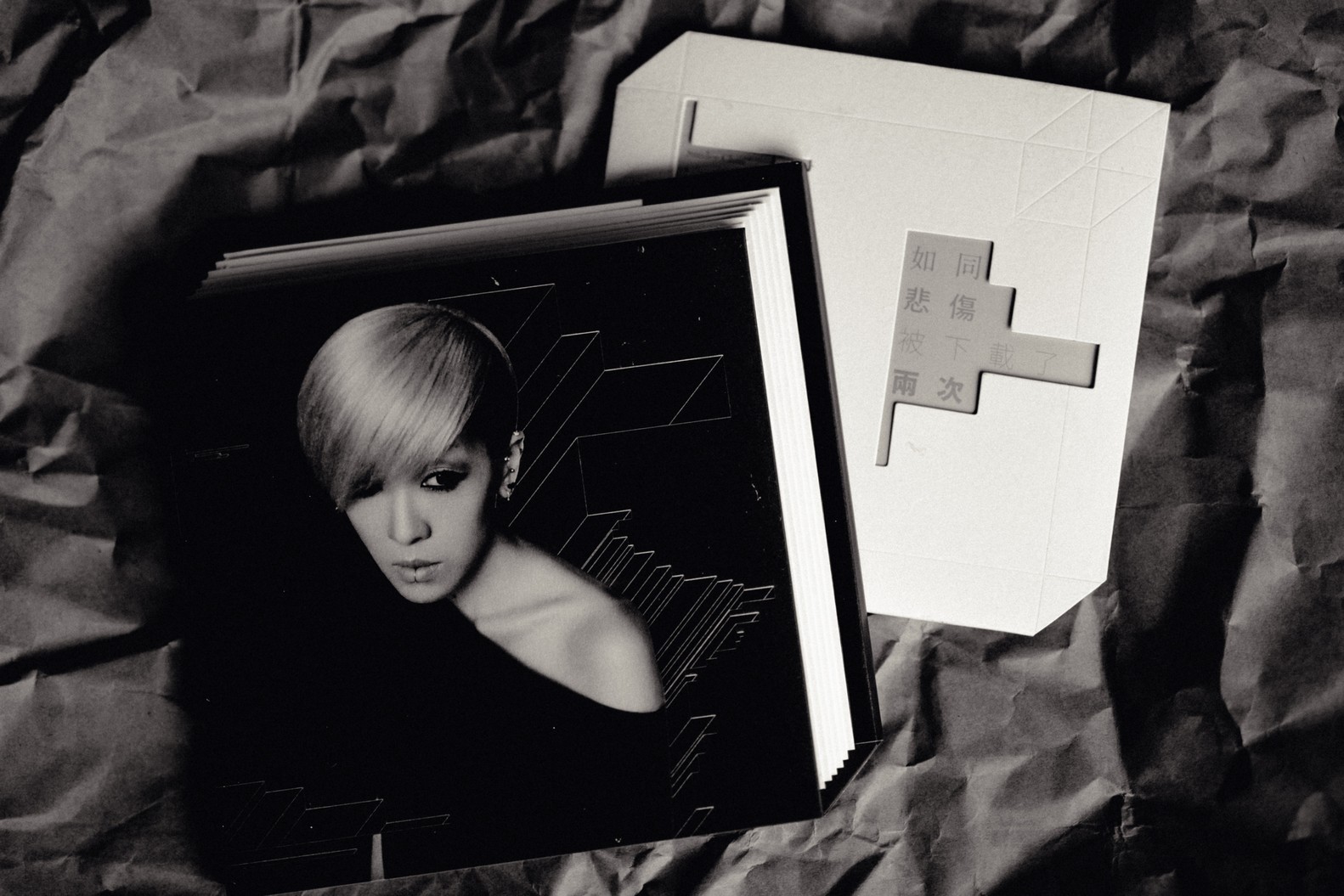 手工書在當代藝術的使用,可說是「藝術家的書」類別中具備長久歷史的藝術創作類種,我們幾乎可以將它與人類的書籍藝術史放在一起看,無論是裝禎、書寫系統的設計、乃至書寫媒材,對書的迷戀歷史中有許多的插曲與故事。以賽璐璐片做成的詩集,幾年前在台灣被放置在水族箱裡頭所帶來的驚奇仍在許多人的腦海中,這現象造就了另一本夏宇傳奇的詩集。若我們以「藝術家的書」來看陳珊妮的新專輯不免也會一時露出莞爾。《如同悲傷被下載了兩次》這張專輯首波主打歌 MV 本身的形式也是以這樣的類型現身,去年十月份的時候還在誠品舉辦了手工書的展覽,這個展覽透過一本在 MV 中現身的手工書搭配十位創作人的書籍一起聯展。從書籍到作者、作者到作詞者的暗示,已有編選的意味。